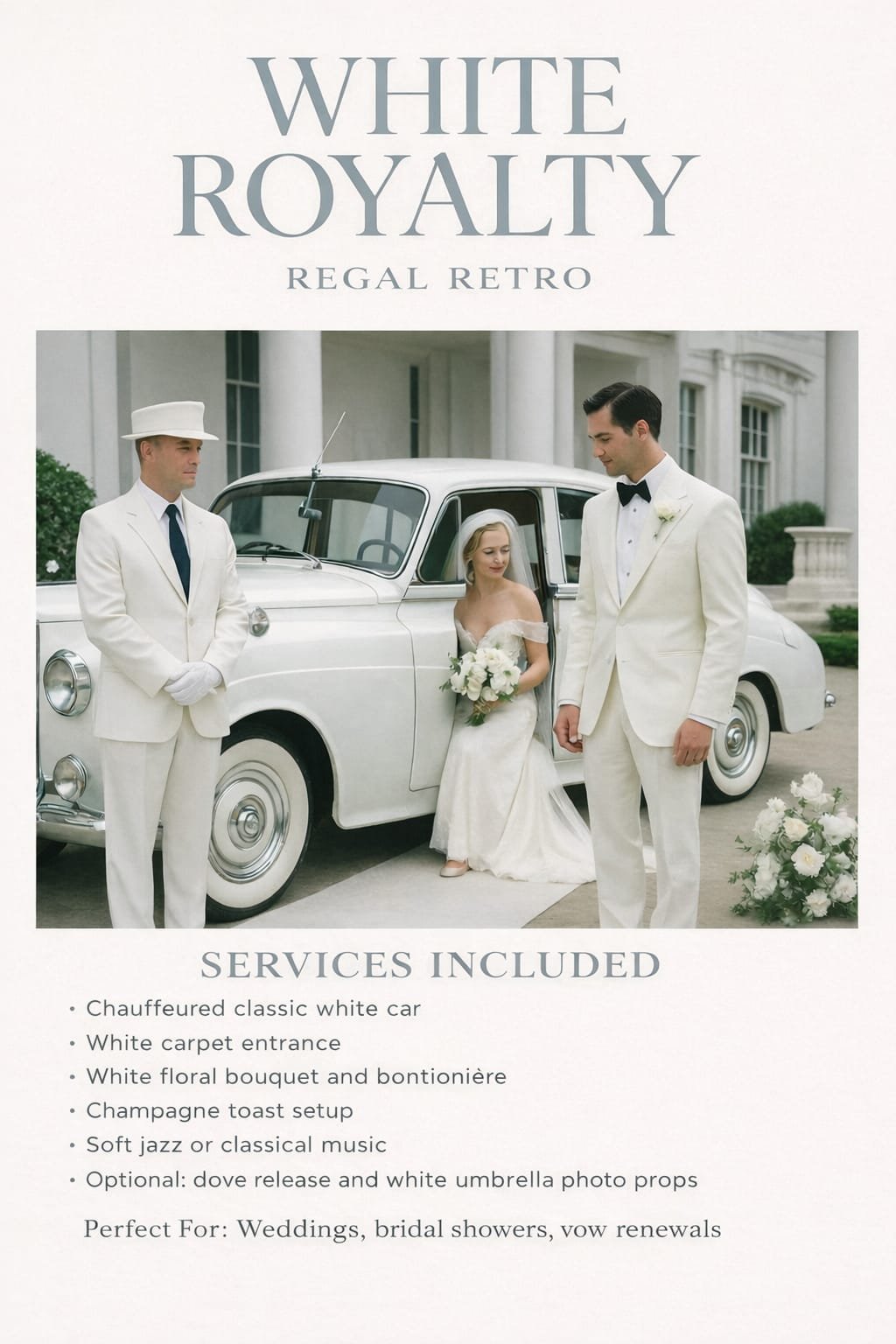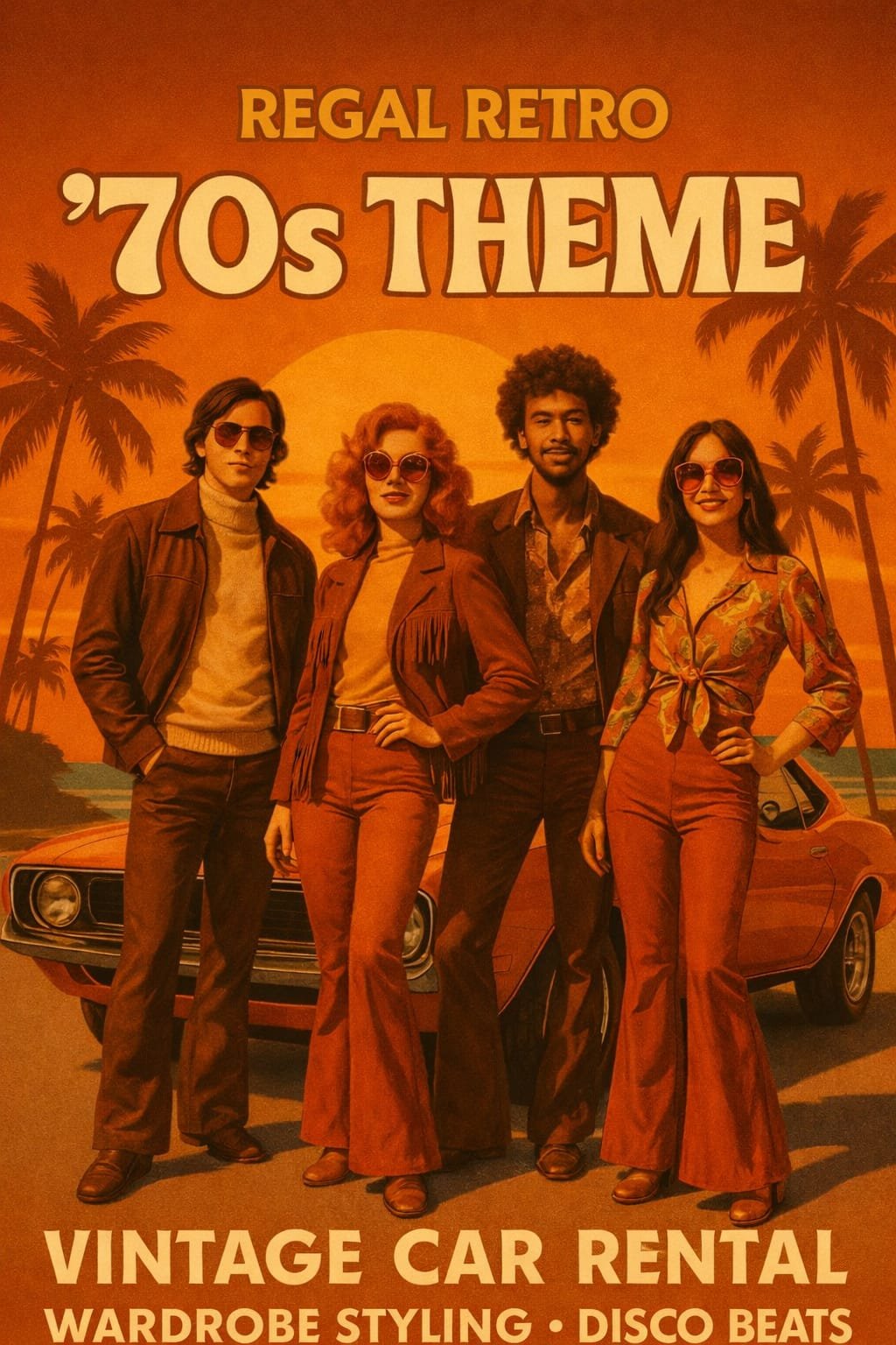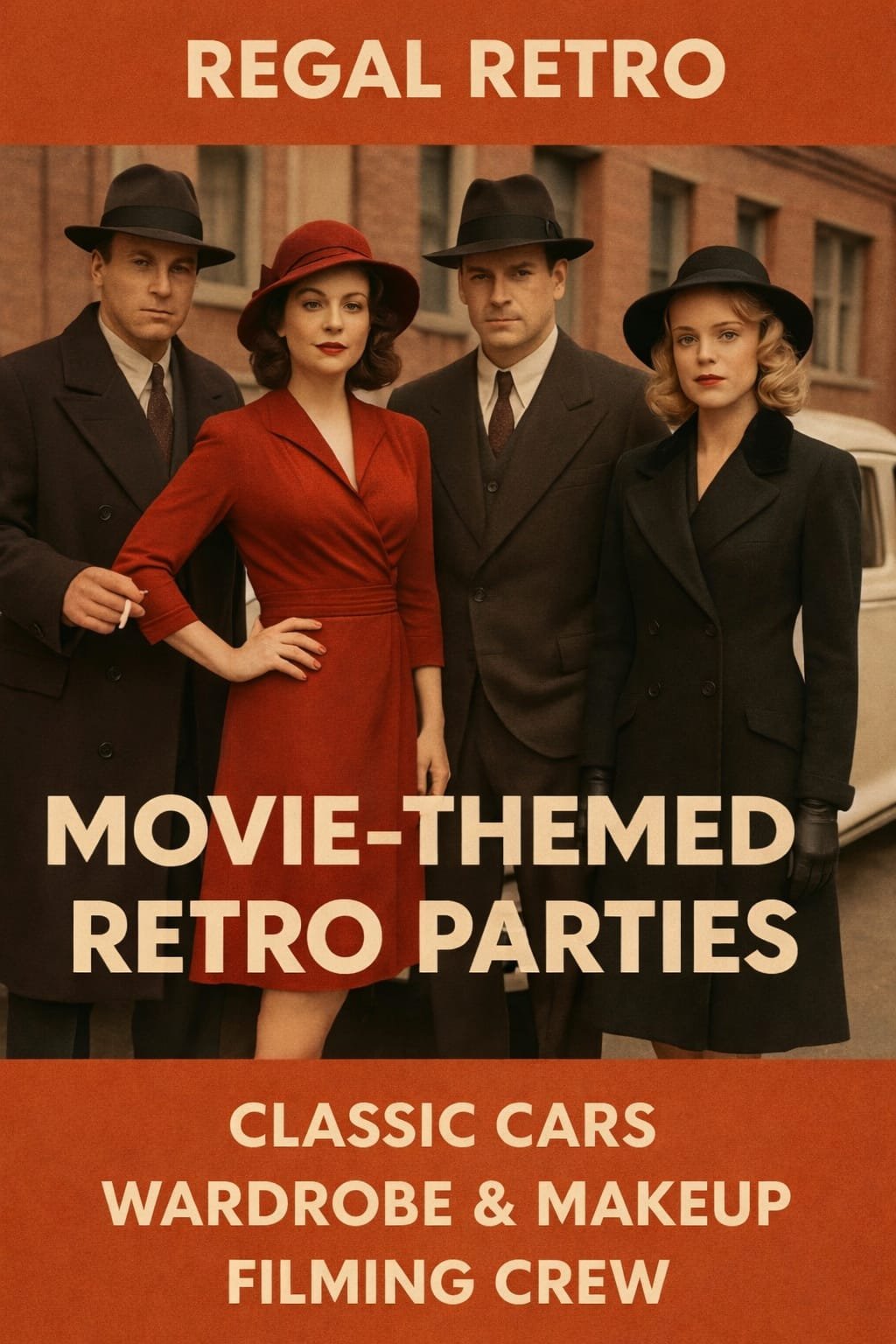 our event isn’t just another day — it’s a scene. From the moment our car pulls up, your guests are transported into the magic of another era. Whether it’s 1950s elegance, 1970s rebellion, or Mad Max–style chaos, Regal Retro turns any occasion into a cinematic experience.