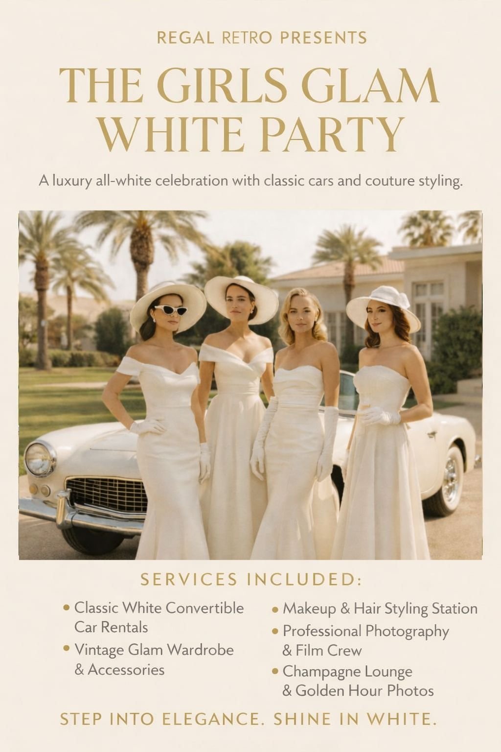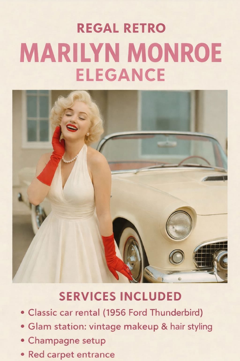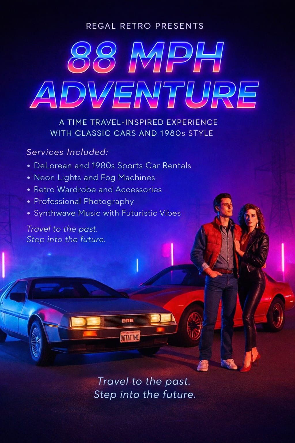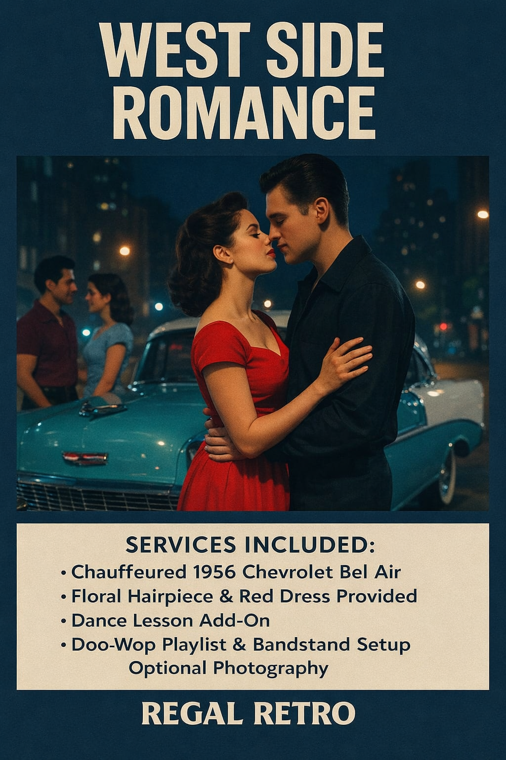 our event isn’t just another day — it’s a scene. From the moment our car pulls up, your guests are transported into the magic of another era. Whether it’s 1950s elegance, 1970s rebellion, or Mad Max–style chaos, Regal Retro turns any occasion into a cinematic experience.